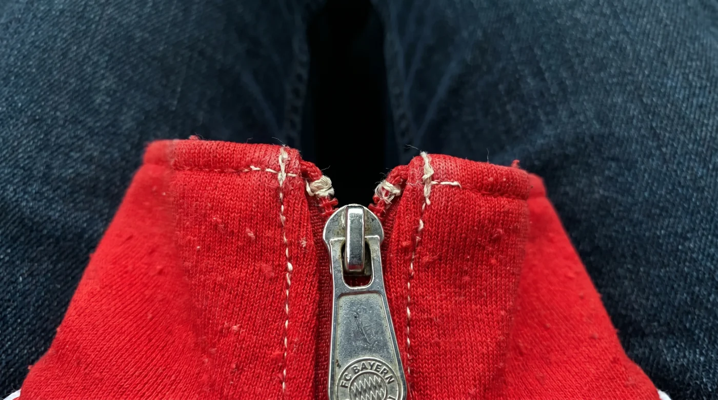 If you are in a rush, leave the jacket entirely unzipped and rely on the heavy drape of the open fabric to frame the torso linearly. For the purist, source a 1990s Bayern kit piece with the original matte metal hardware, which carries enough physical weight to keep the collar flat and the zipper anchored even in high winds.
