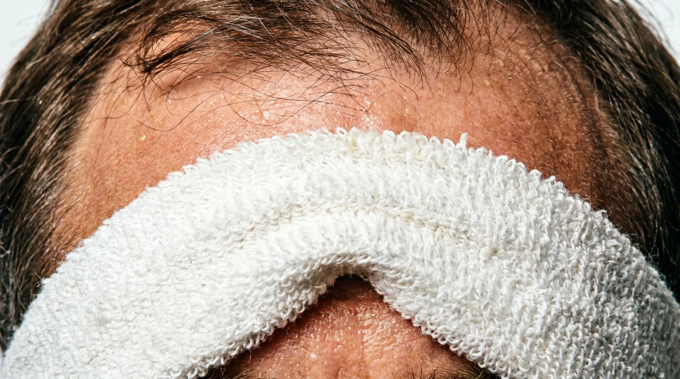You pull the thick, neon-flecked terrycloth over your forehead, the elastic snapping lightly against your temples. The fabric is dense, carrying a faint synthetic smell of fresh cotton and rubber. When you look in the mirror, the harsh, creeping M-shape at the top of your brow vanishes. Instead of a retreating hairline, your face is suddenly framed by a sharp, horizontal boundary. The visual weight shifts from the thinning crown down to your eyes and jawline. It feels slightly abrasive but deeply secure. You aren’t hiding; you are leaning into an aggressive, vintage athletic aesthetic.