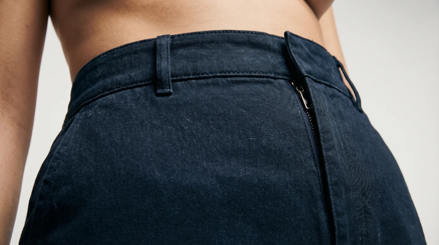 Even with a brilliant geometric cut, heavy cotton blends can fight back if mismanaged. If you notice pooling at the crotch or horizontal pulling across the zipper, the waistband is sitting entirely too low. You have to fully commit to the extreme high rise. Pulling the fabric higher instantly smooths out those awkward tension lines across the front pockets and restores the flat front. Heavy fabrics also tend to relax by mid-afternoon, causing the waist to slip.