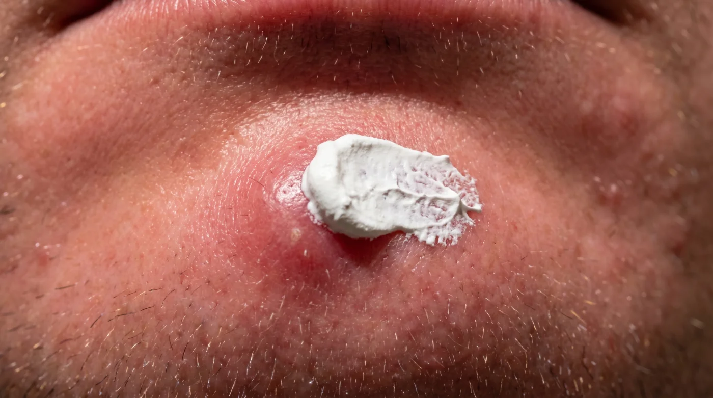 Scoop a pea-sized amount using a cotton swab and press it directly onto the throbbing nodule. Do not rub it in; you want a visible, raised white mound sitting squarely on top of the blemish.
